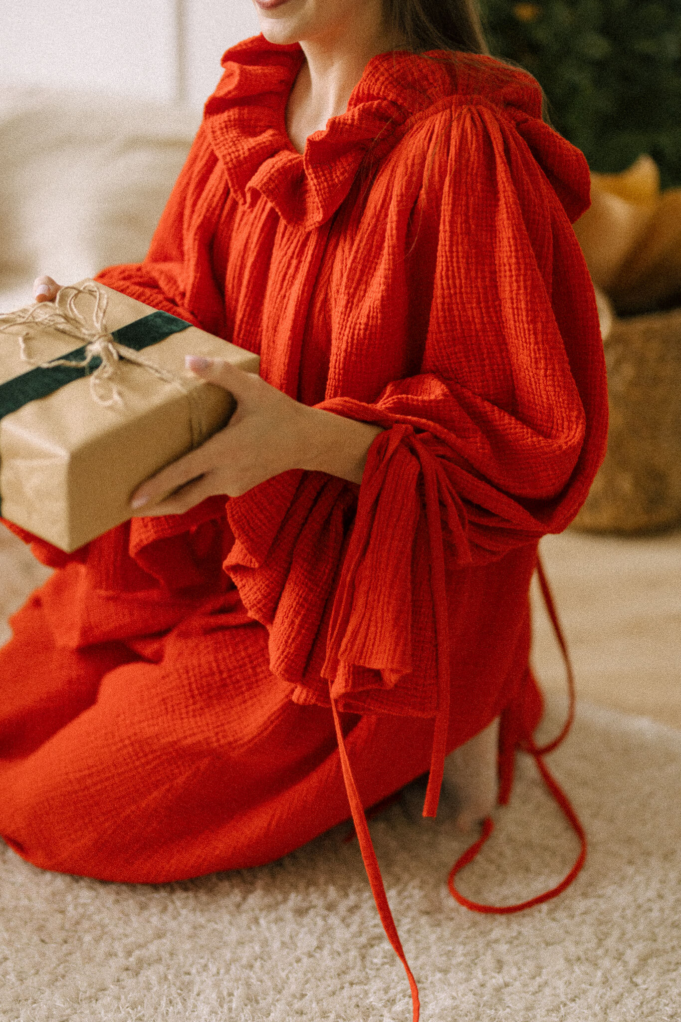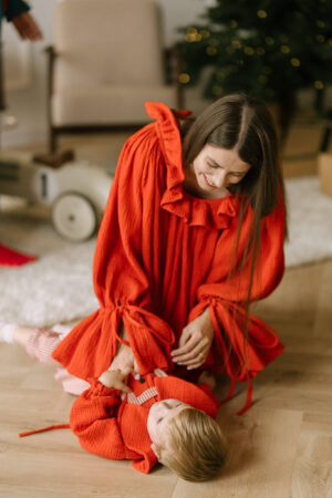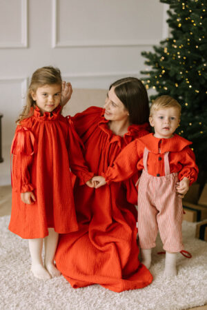 Confecționată din muselină organică moale, Rochia Rază se simte ca o îmbrățișare delicată, ușoară ca un vis.